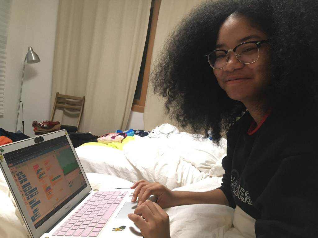 In the other room, Lulu tested some of the chemistry demos for Day 2, and Sarah continued to work on her Scratch game for computer science day. Our floor is littered with so much stuff from Daiso such that we could have our own Daiso.