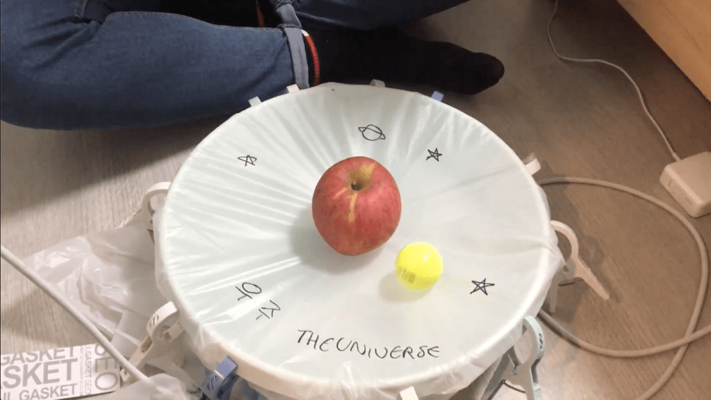 It’s the night before our first day at Yeomyung! Just now we tested a gravity simulation using a trash bag, a plant saucer, a golf ball, and an apple (see what we did there?) for Lexi’s Aerospace day.