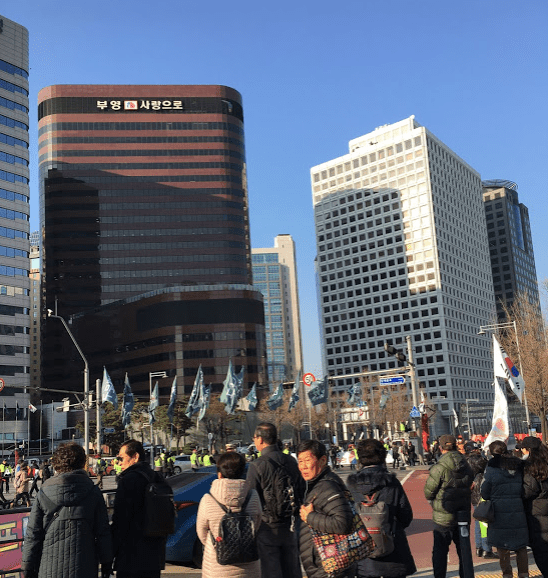 We then decided to go to Lotte mart near Seoul station to finish off our shopping for our workshop. It was about a 15 min walk and on our way we came across a political protest against the current administration. The police was there to protect and maintain traffic as the citizens of Korea walk the streets holding big banners. The music playing was lowkey confusing tho, there was intense music playing but towards the back there was like some OST music vibes going on. We also made a short stop to a local bakery store where we got some baked goods. However, before finding that bakery ur gurl bought some mediocre hottdeok wasting her money away…tragic 😦 We finally arrived to Lotte mart and began our search for the remaining materials we needed for the workshop. We decided to leave the shopping cart near the snacks section and split up. Each one of us had an item we needed to search for. Shelia gave us the translation for the items and we went off on our hunt. We regrouped after 30min, bought the items plus some groceries and took the subway back to our airbnb. Tragic Lexi had to carry the pack of water bottles tho. (big brain = big muscles)