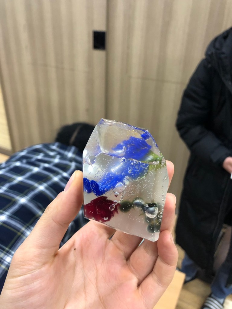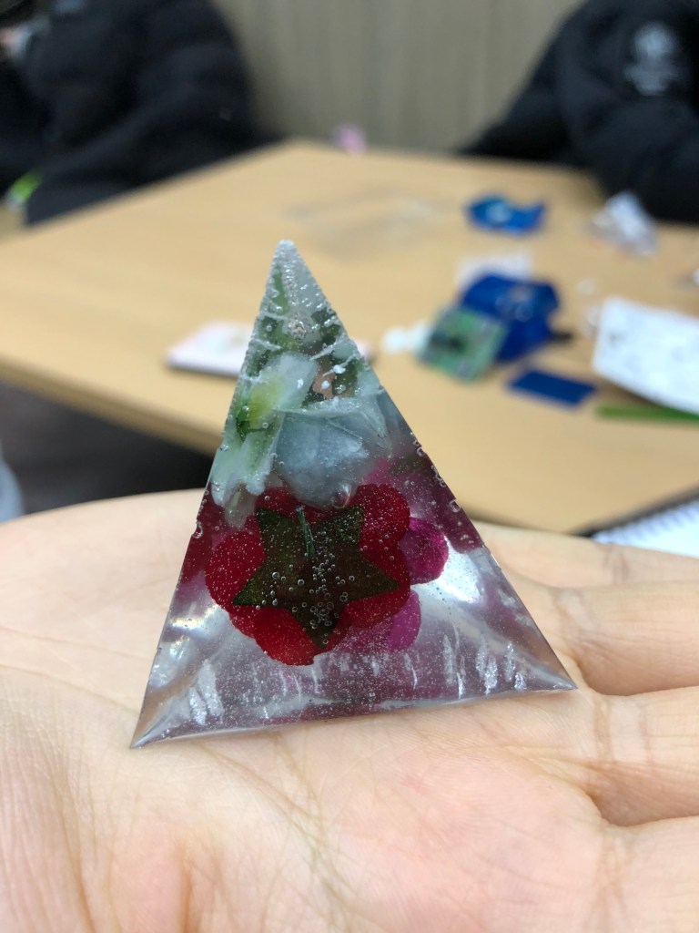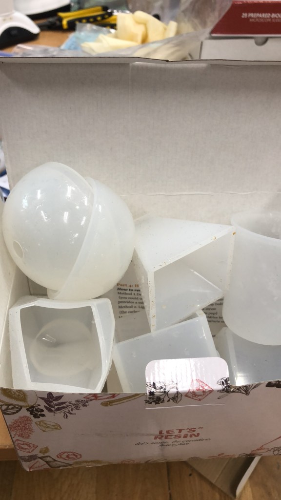 From our mistakes, we learned that you shouldn’t put watery things in the resin: we used air freshener bubbles to put inside, and they all were so heavy that they fell out of the resin mixture. Us teachers also tried to put an uncooked egg in the resin, but because the egg white was less dense than the resin, it wouldn’t go in, and the egg kind of just floated on the surface of the resin—sad.