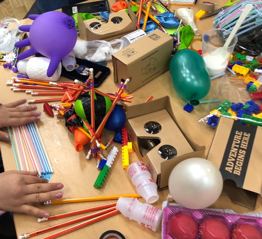 The day before, we asked students to bring in anything they might want to preserve in the resin. Some students brought in flowers, toys, little plushies, and more! One student even used the skeleton he 3D printed to put into the resin. We also had a lot of other materials that they could use. The epoxy resin we used hardens in 5-6 hours, so by the end of the day, the students could see their wonderful creations, but we kept them at the school over the weekend just to be extra sure that they had appropriately hardened.