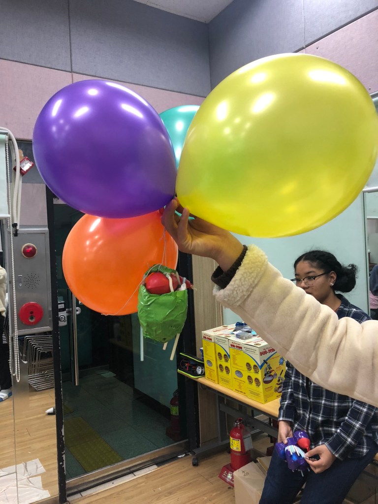 In the afternoon, we had the students do the egg drop activity given a bunch of random supplies and an “egg-stronaut” that they had to deliver back to Earth. We split them into groups of two, and everyone got really into the activity, going all out with straws, tape, balloons, and more! We teachers made our own contraptions as well: Sarah and I were one team while Sheila and Lexi were one team. To test the students’ creations, we had them drop them from the roof of the school. Amazingly, even from this extremely tall height, some teams survived the fall with completely unharmed eggs! On the other hand, both teacher teams’ eggs cracked…but those who made good use of triangle shapes and balloons were the ones that fared well.